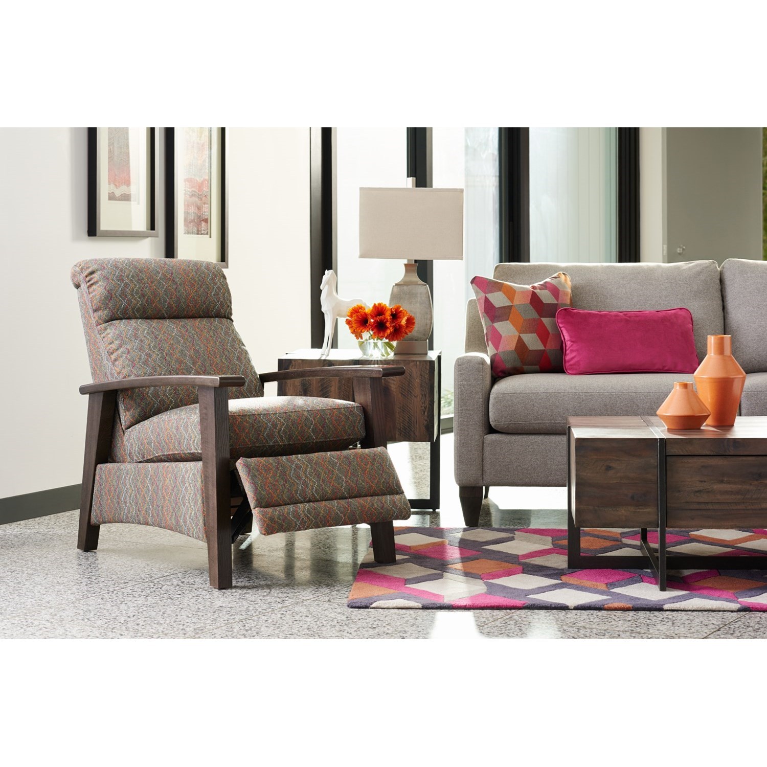 La Z Boy Recliners Nouveau Modern Recliner With Wood Arms Novello Home Furnishings High Leg Recliners